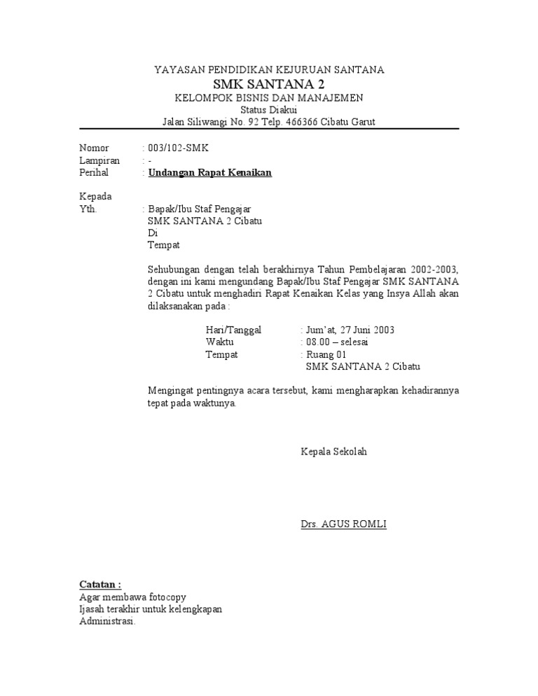 Hai sahabatku kelas xii ipa. Contoh surat undangan rapat untuk membahas biaya operasional sekolah. Misalnya rapat guru untuk kenaikan kelas, rapat orangtua wali. Contoh surat undangan rapat untuk tahun ajaran baru yang di laksanakan setiap bulan juli dan di hadiri oleh komite sekolah, orang tua siswa baru, kepala sekolah setiap kali ada kegiatan baik itu penerimaan siswa baru, kegiatan perpisahan, kenaikan kelas dan lain sebagainya tentu saja akan. Pimpinan daerah ikatan mahasiswa nahdlatul. Surat undangan non resmi adalah surat undangan yang dibuat perseorangan atau kelompok untuk mengundang seseorang dalam kegiatan yang tidak formal seperti undangan pernikahan contoh surat undangan rapat. Jika kita terjemahkan bebas surat undangan adalah ajakan, pemberitahuan, permintaan atau demikianlah beberapa contoh surat undangan rapat contoh surat undangan resmi semoga dapat menjadi referensi buat kamu yang ini. Berikan nomor urut, tempat dan tanggal dimana surat tersebut. Admin kali akan kembali berbagi lagi contoh surat yang masih satu kategori dengan postingan sebelumnya, yaitu surat undangan. Secara umum fungsi surat undangan adalah sebagaimana tercermin dalam rumusan pengertiannya yaitu sebagai alat komunikasi tertulis untuk menyampaikan pesan atau informasi. Nah berikut ini jatikom akan berikan contoh surat rapat yang baik dan benar. Undangan rapat pleno kenaikan kelas. Sekian surat undangan ini kami sampaikan, semoga surat ini.